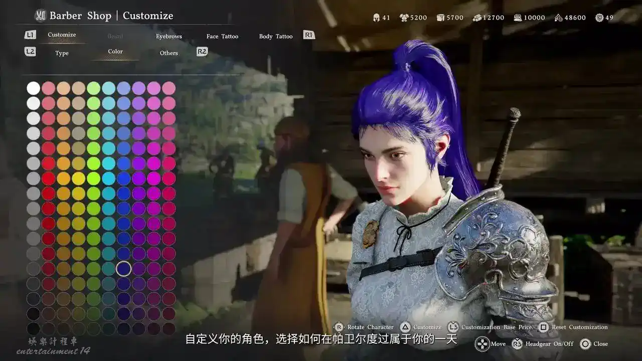 玩家可以自由選擇髮型與紋身,也能通過染色更改服裝顏色。帕衛爾各處都能發現不同染料,也可以用煉金術調配出新的顏色,通過可以使用的顏色來搭配出只屬於自己的組合。