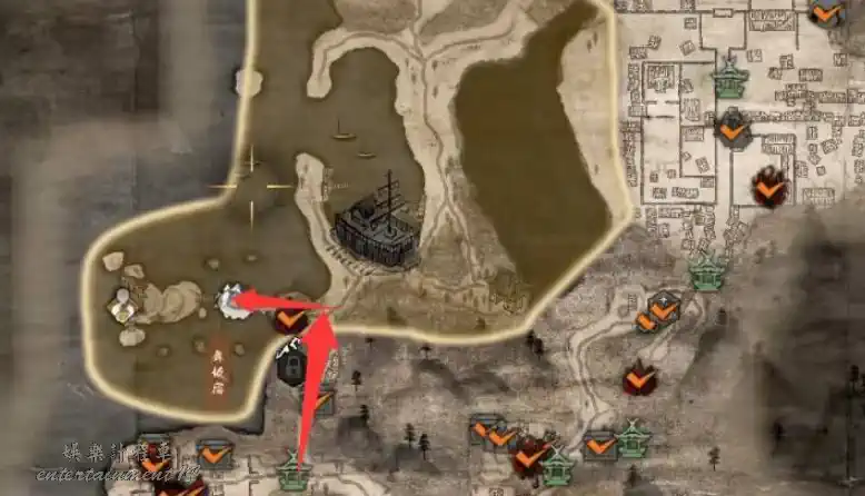 斷橋處會遇到善擦(白色貓妖),它會因斷橋無法通行而主動帶路。