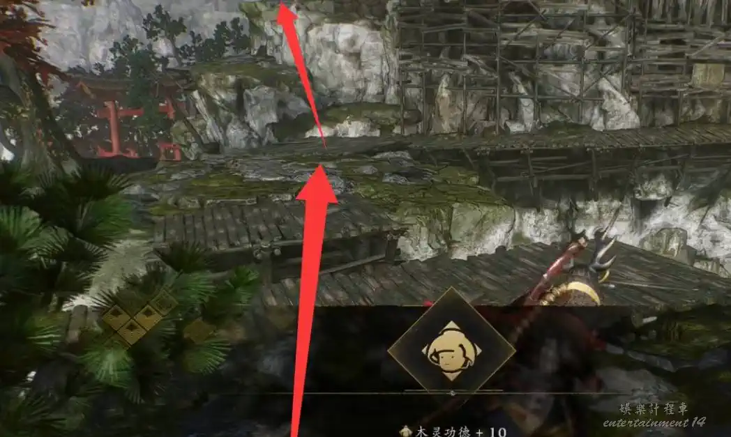 第三個靈脈後,跟隨善擦到終點,旁邊平台有木靈可收集。