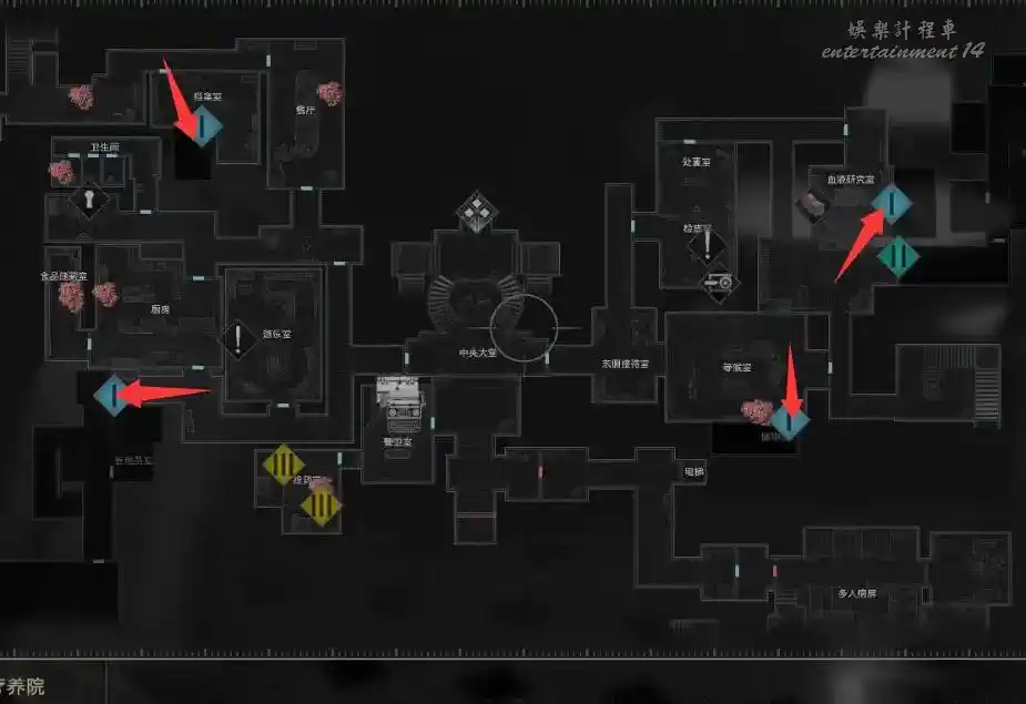 有了身份識別腕帶(1級),一樓的四個一級門禁,現在可以開了。