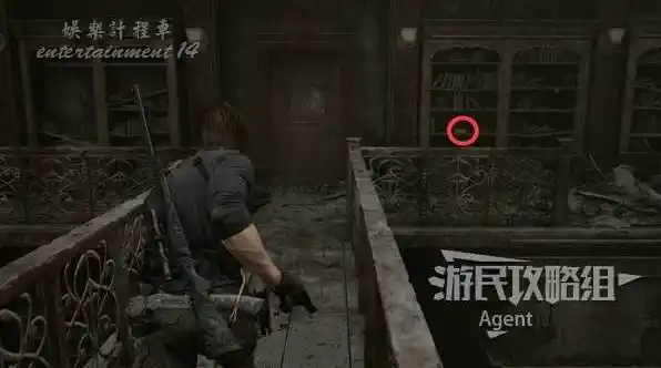 只需迅速退回研究主任室,它會卡在門口進不來。先用安魂朝它的頭來一槍,然後用手槍射擊頭部,如果它離開就出去再吸引它回來卡在門上,繼續射擊頭部,擊敗肥碩喪屍得到【監視者掛件】。
