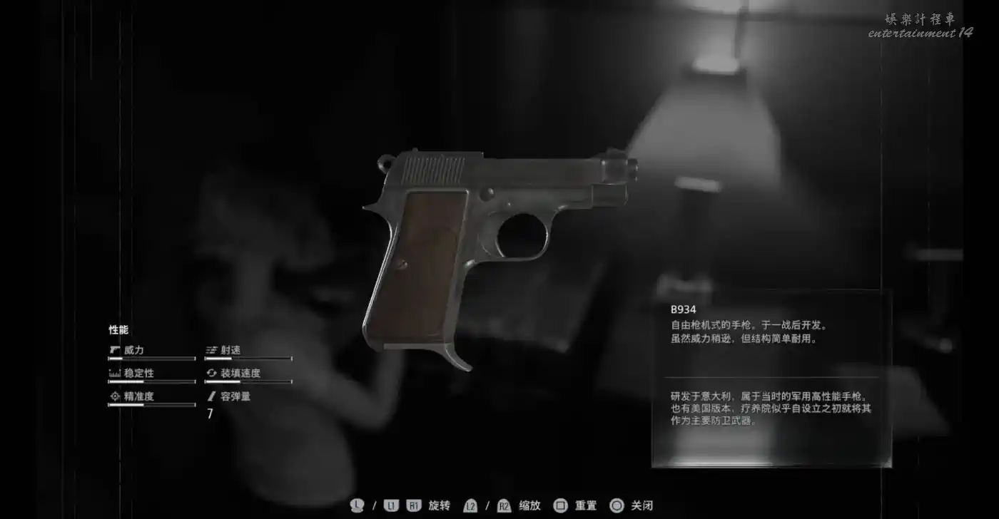 位於療養院一樓西側,往北來到餐廳,撿到【武器】B934手槍。