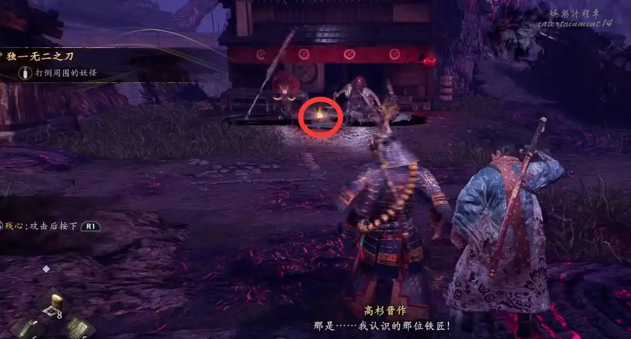 接下任務後,跟隨高杉晉作一同前往鐵匠所在之處。抵達後,清除出現的怪物,並仔細調查地上的屍體。