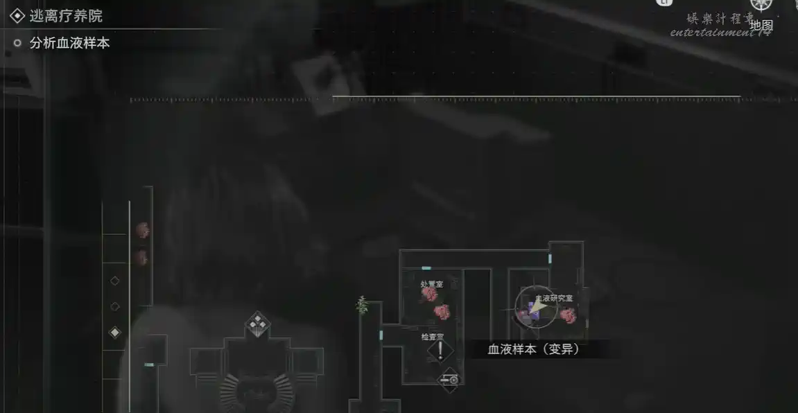 首先需要使用東側門禁卡進入療養院東翼。進入後沿著走廊一直走到盡頭,就能找到血液研究室。