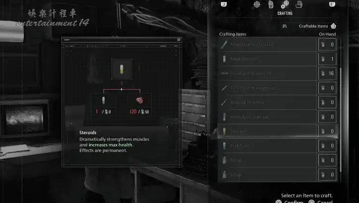 遊戲中大部分物品,如彈藥和溶血注射器,都需要消耗大量感染血液才能製作。