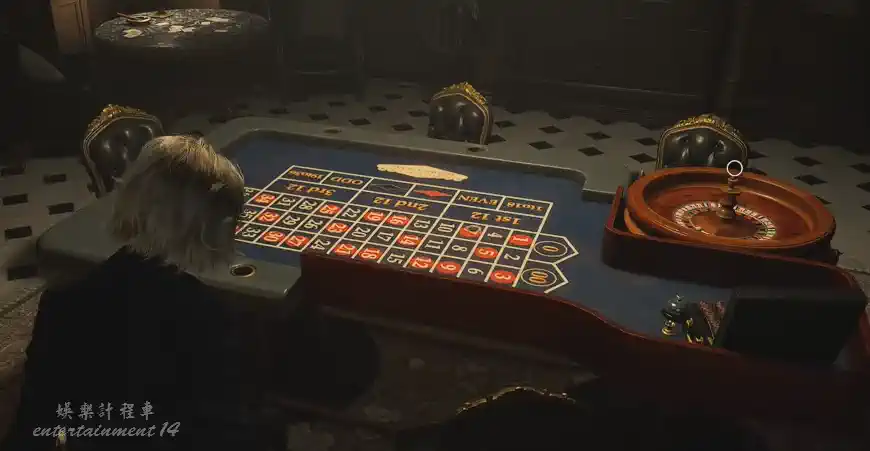 轉盤位置:遊樂室中央的輪盤賭桌,旁邊有下注數字面板。
