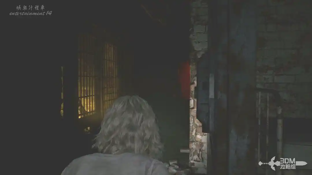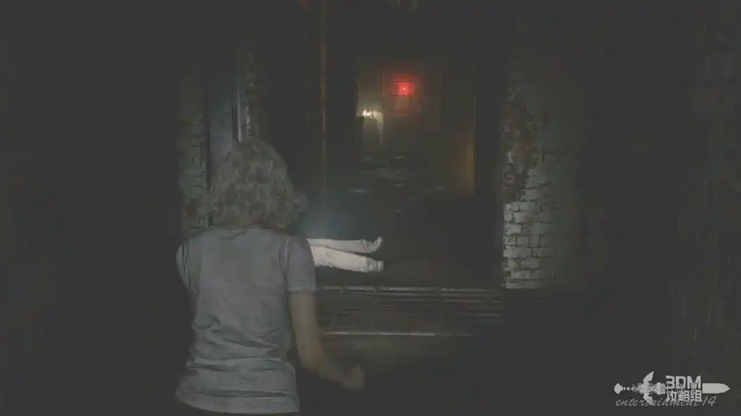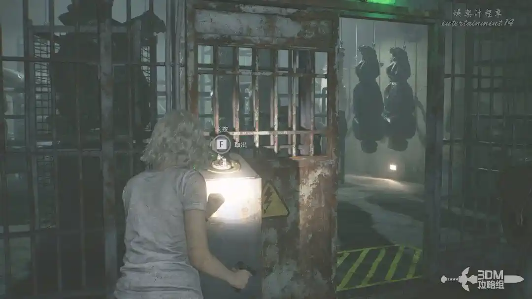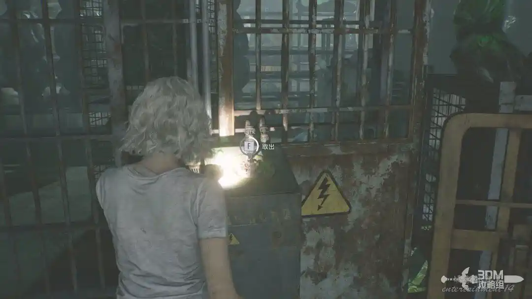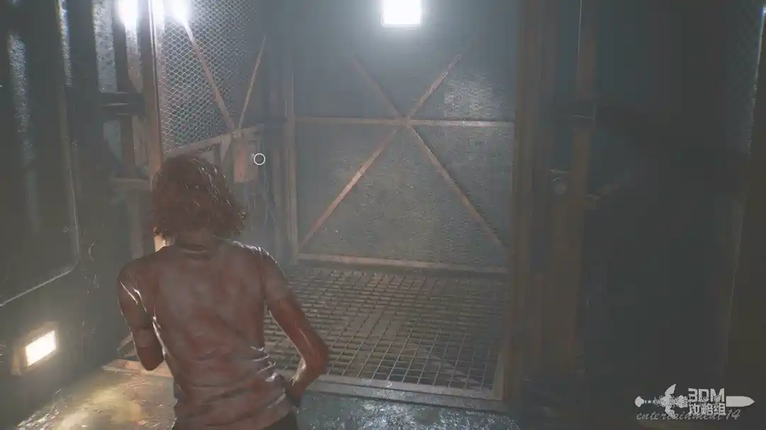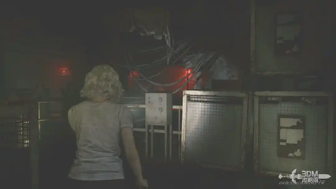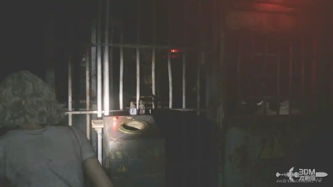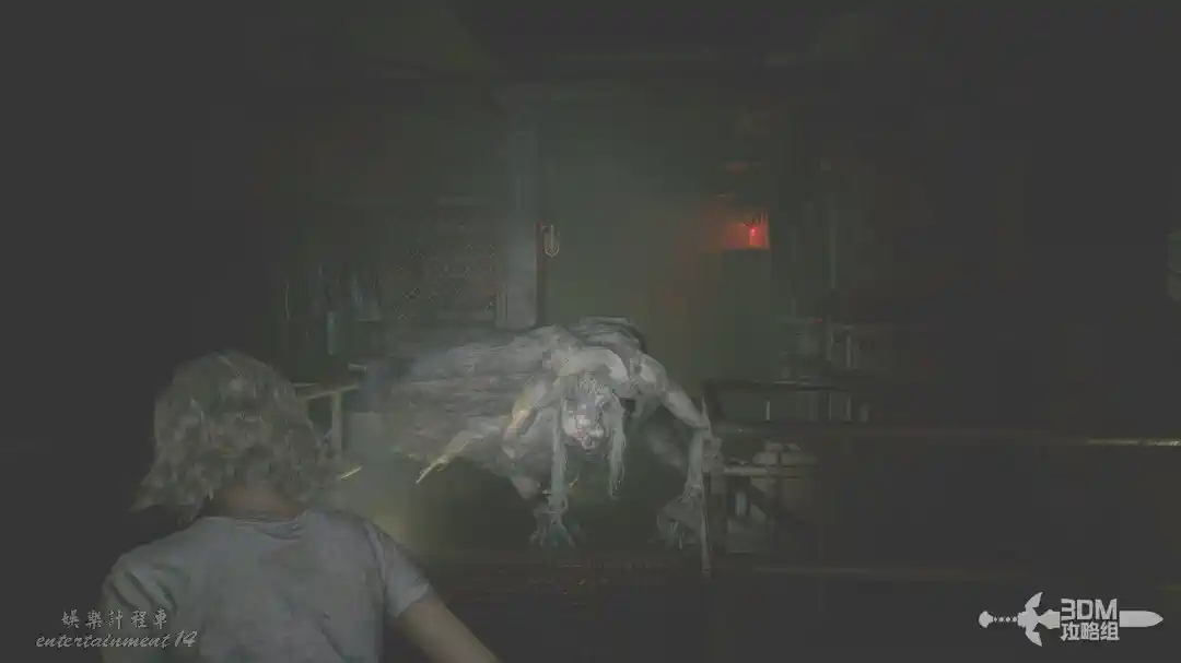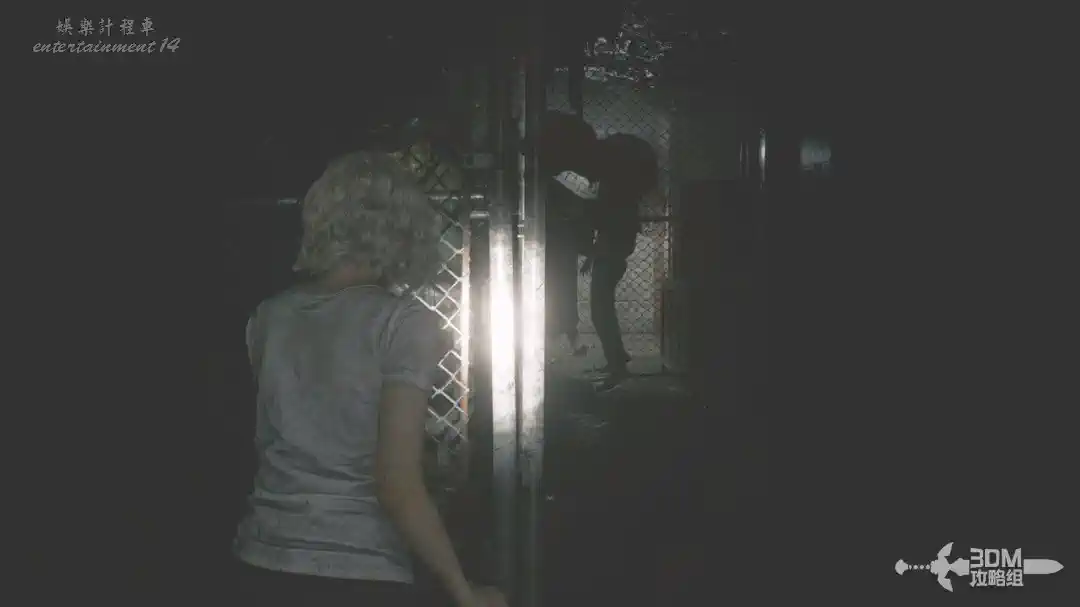 插頭取下來後我們背後會刷出那個巨大的奇行喪屍,現在應該稱呼它“女孩”了。這個時候不用慌張,還記得右邊打開的牢門嗎?我們進去躲一會。