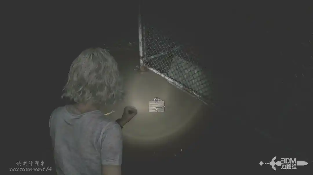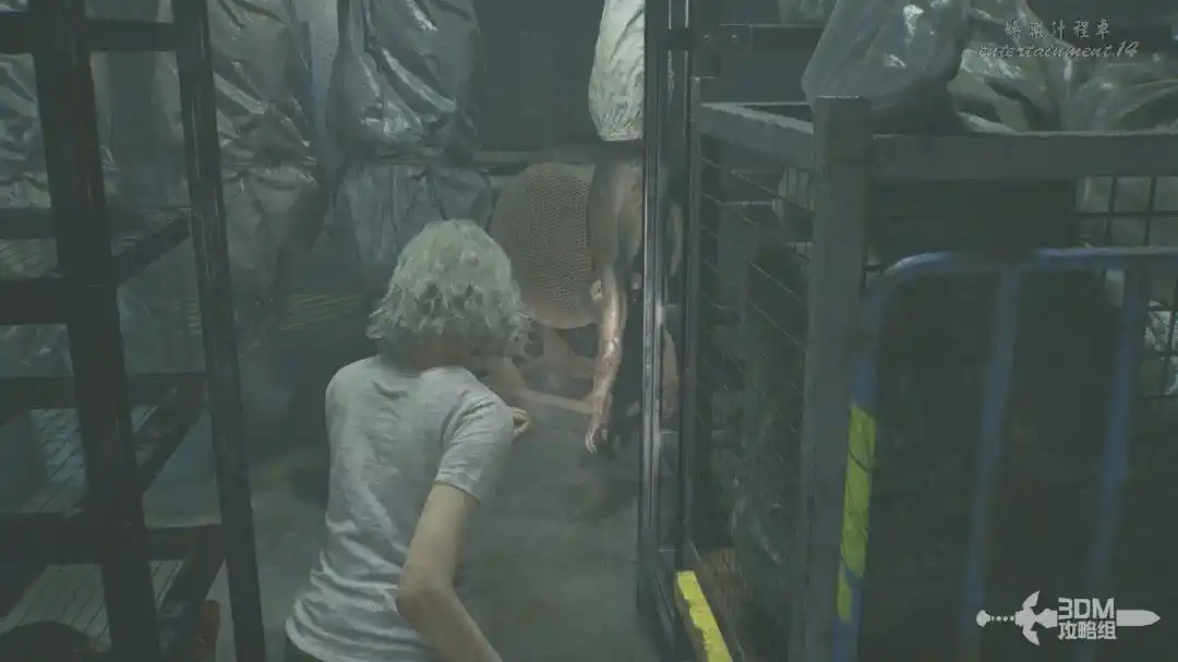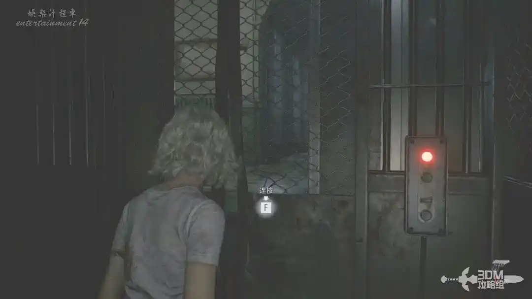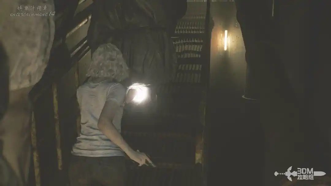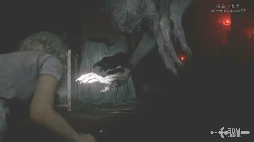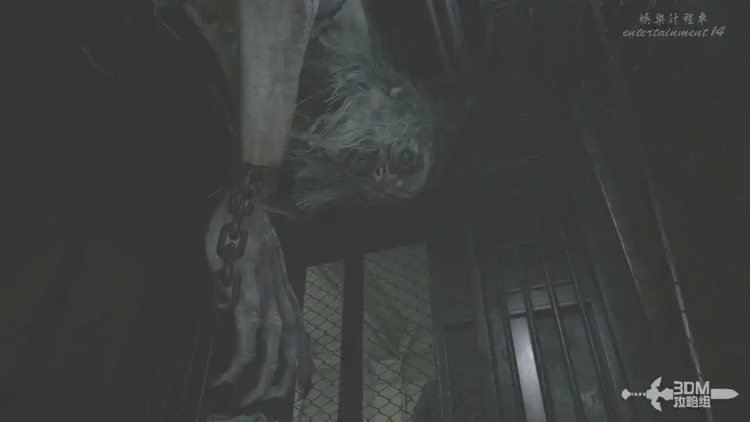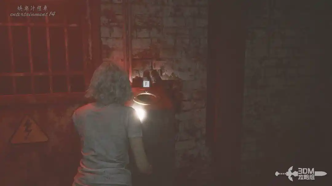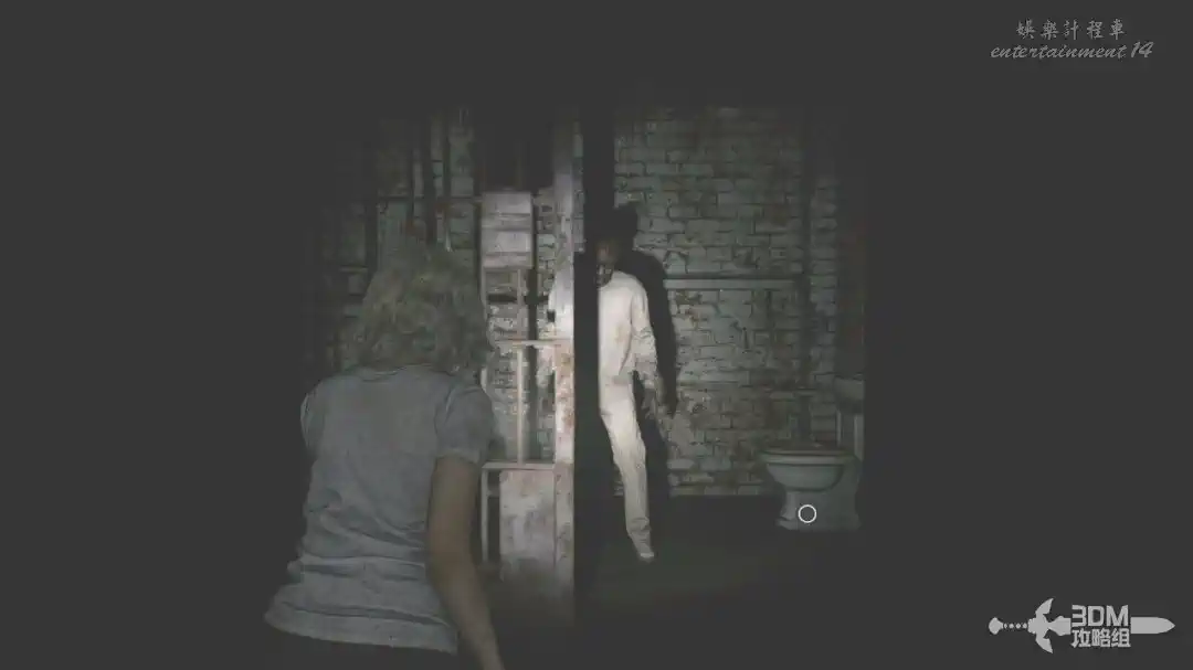 插頭取下來後我們背後會刷出那個巨大的奇行喪屍,現在應該稱呼它“女孩”了。這個時候不用慌張,還記得右邊打開的牢門嗎?我們進去躲一會。
