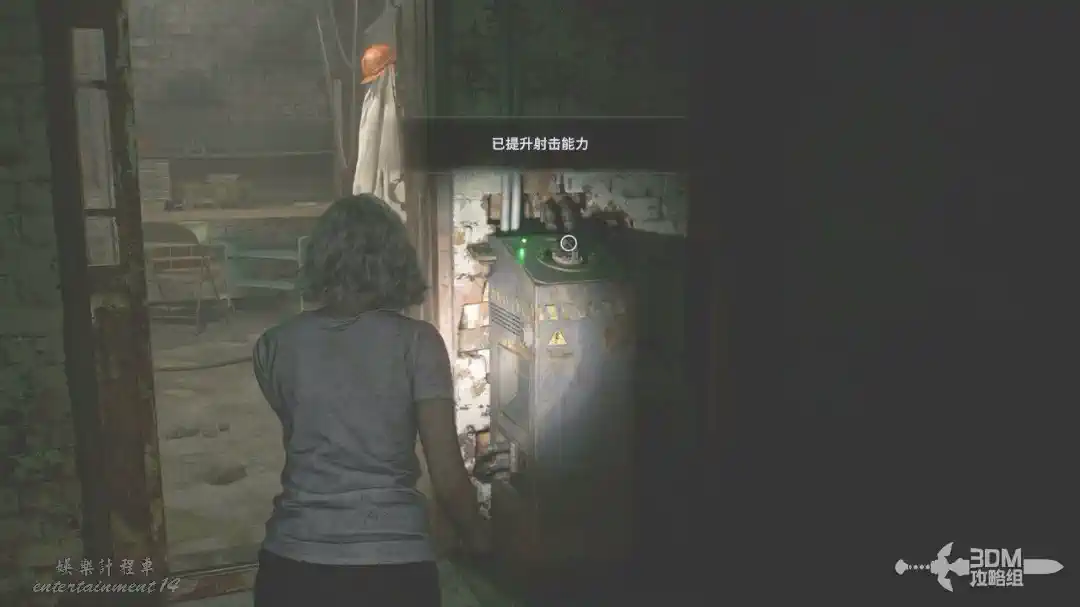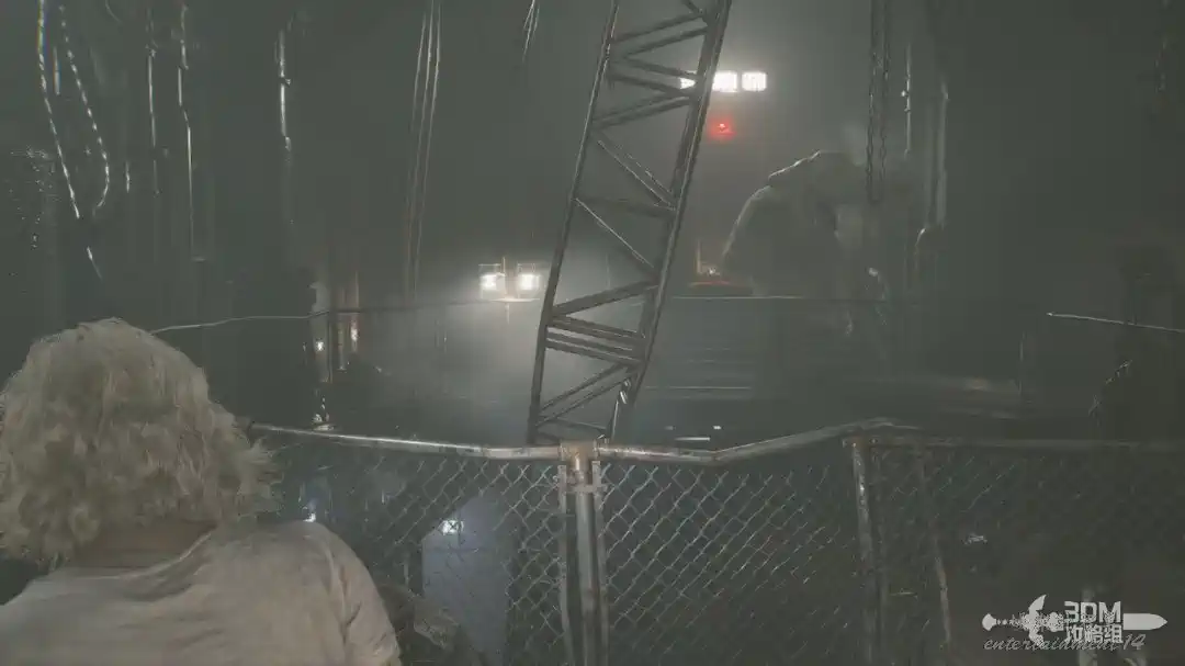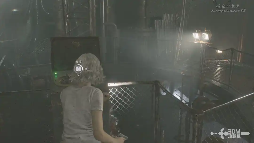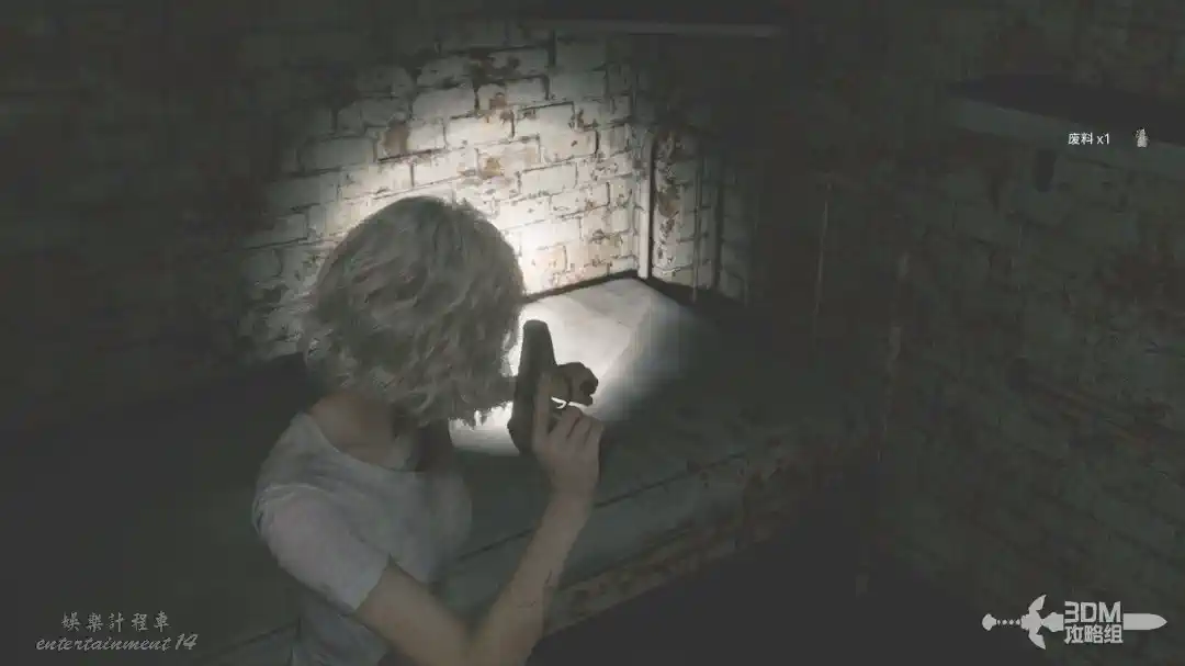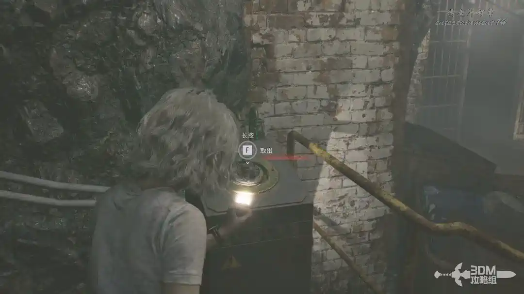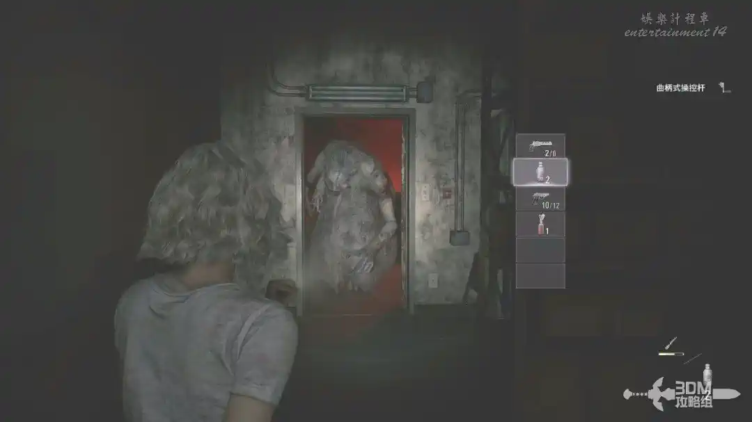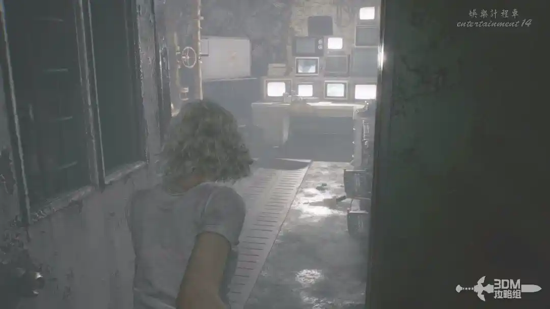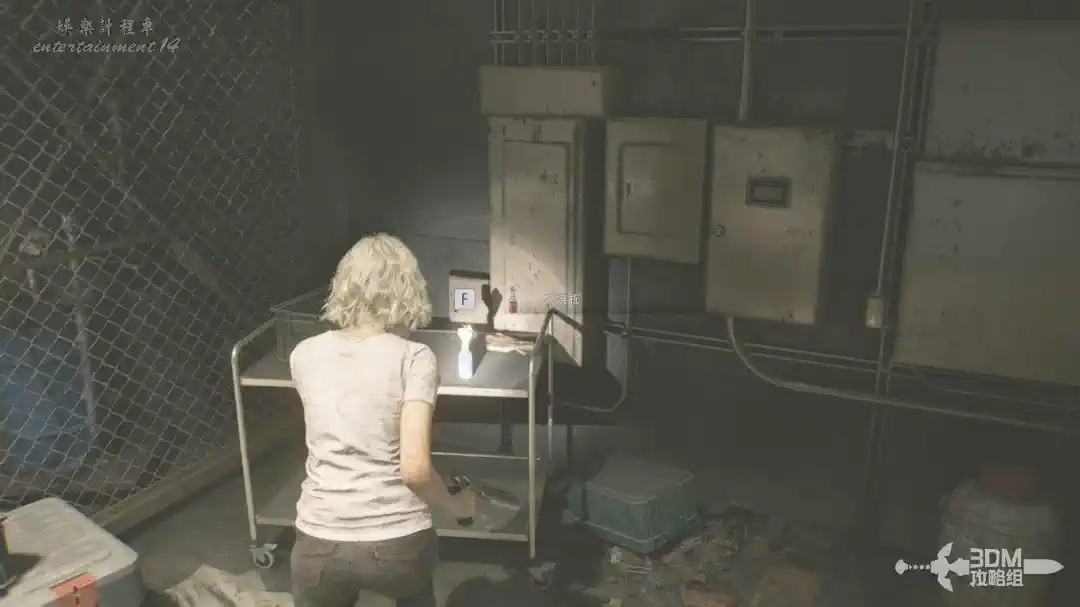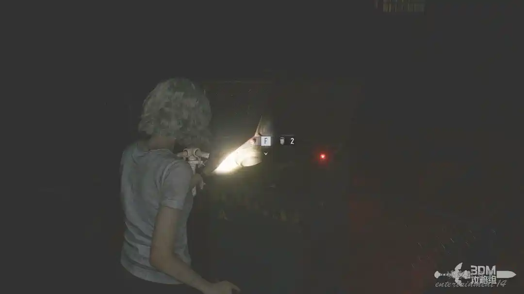 插頭取下來後我們背後會刷出那個巨大的奇行喪屍,現在應該稱呼它“女孩”了。這個時候不用慌張,還記得右邊打開的牢門嗎?我們進去躲一會。