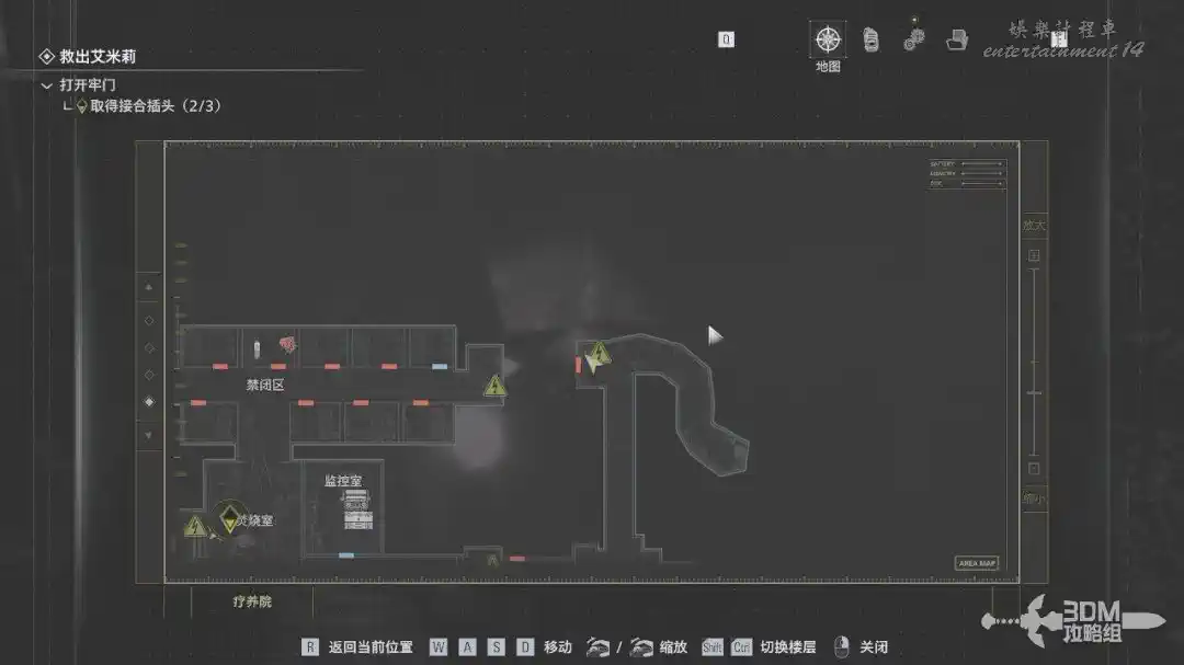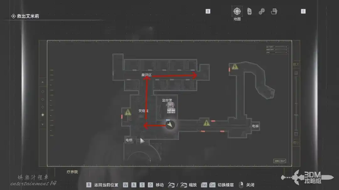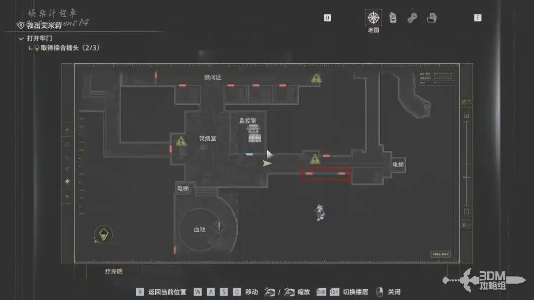 保存完我們出門往右走,打開地圖往禁閉區走。