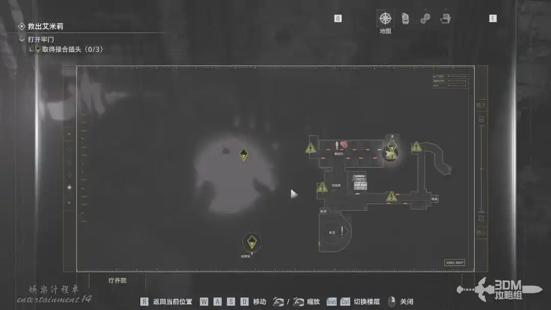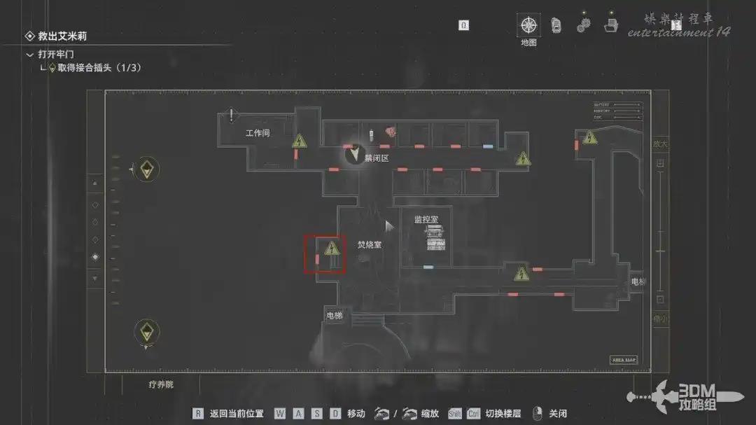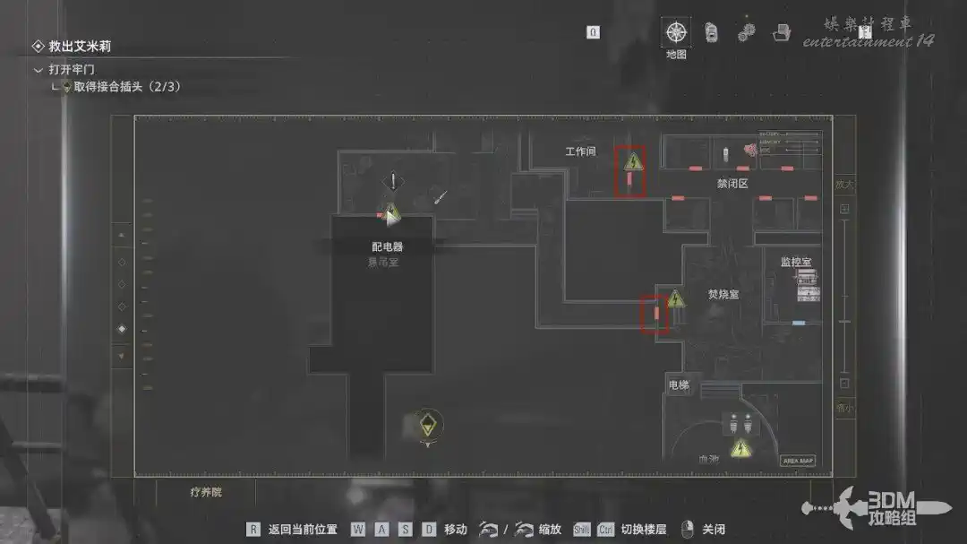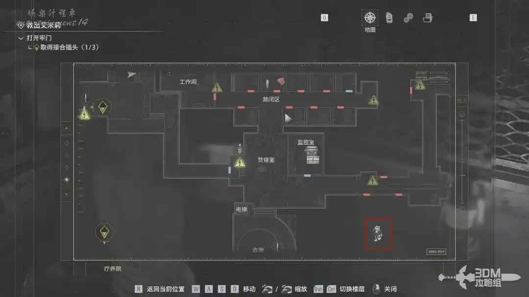 按M鍵打開地圖能看到插頭的位置。