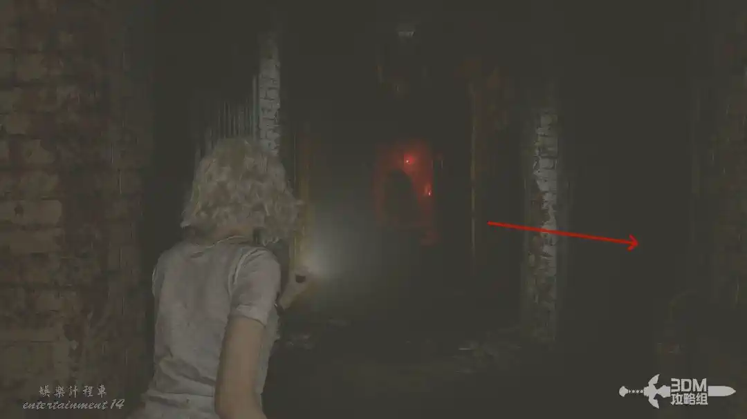 通電後能發現“女孩”就在我們身後,不管它,往裡面走。
