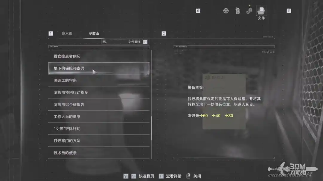 這個保險箱的密碼就是剛才里昂拿到那張紙條,輸入→60 ←40 →80。