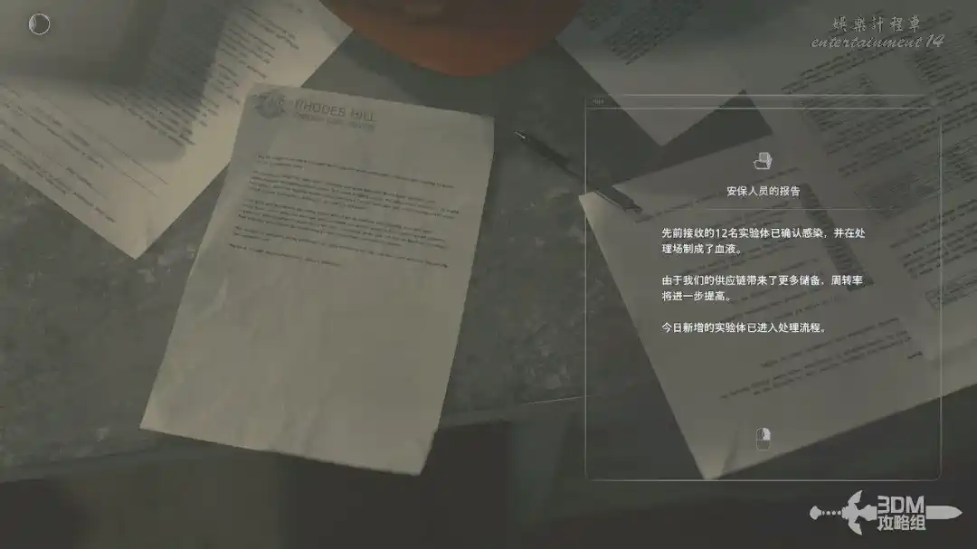 另一側的桌子上能發現“安保人員的報告”。