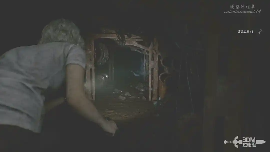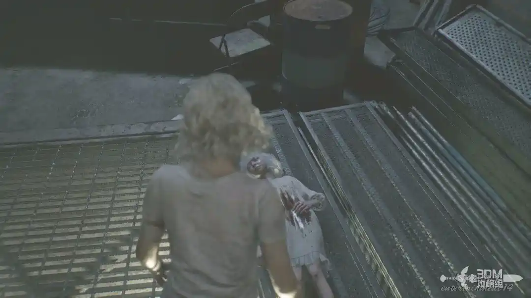 拿到工具往右繼續走,前面會出現一隻喪屍,不過它被“女孩”給拉走了。
