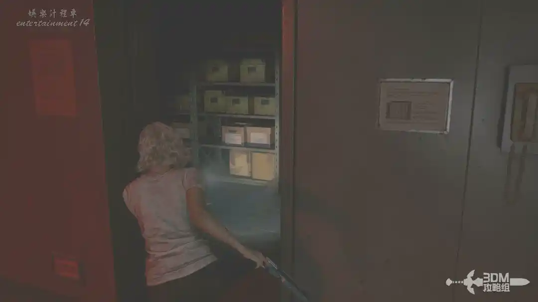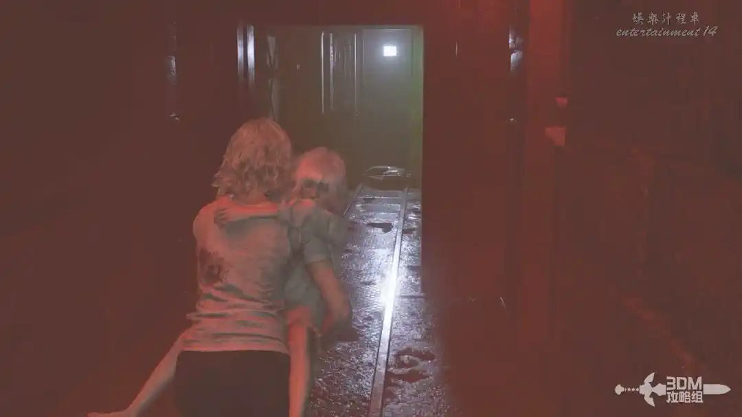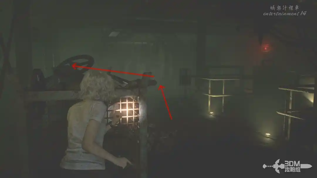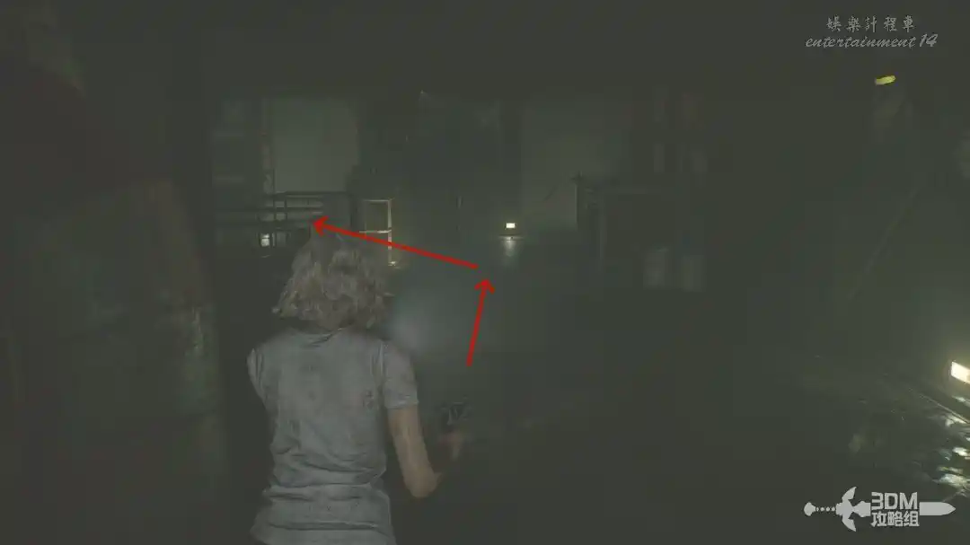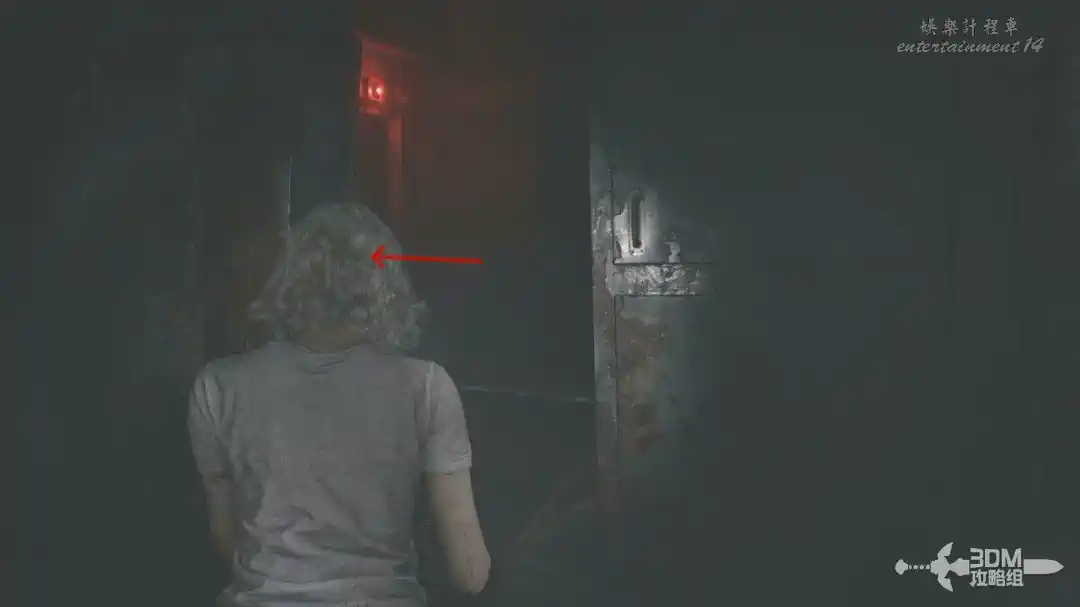 畫面又轉到格蕾絲這裡,我們抱著艾米莉來到地下。沿著主路一路走過來,進這個大門。