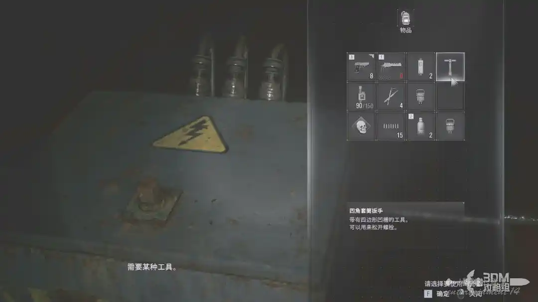 打死後和右邊的操作臺互動,用剛才拿到的扳手把這個鐵箱子打開。
