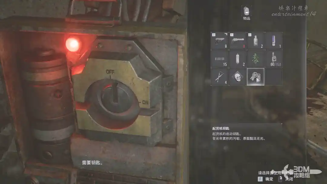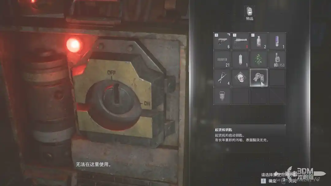 這裡還是無視它,直接來右邊和起貨機交互,插入鑰匙,我們有偉大的無敵幀。