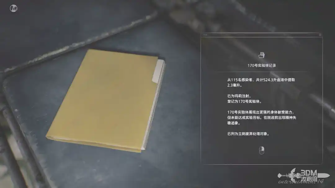 中間區域沒東西,只有一些可以觀看的東西。我們往裡面走,這個擔架上有“170號實驗體記錄”。