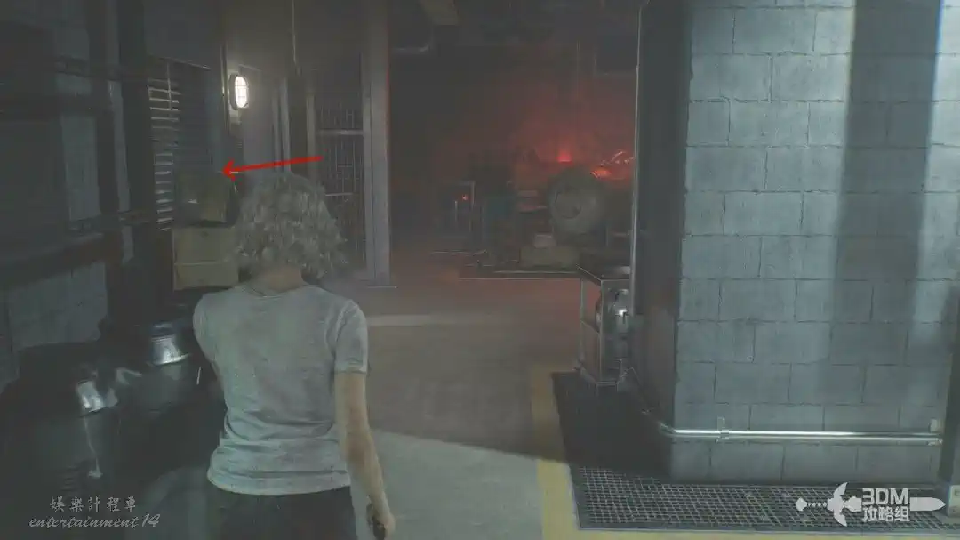這邊的門沒發電打不開,但是可以來到門左邊踩這個箱子上去,出來後還是去焚燒室門口拿那個插頭。