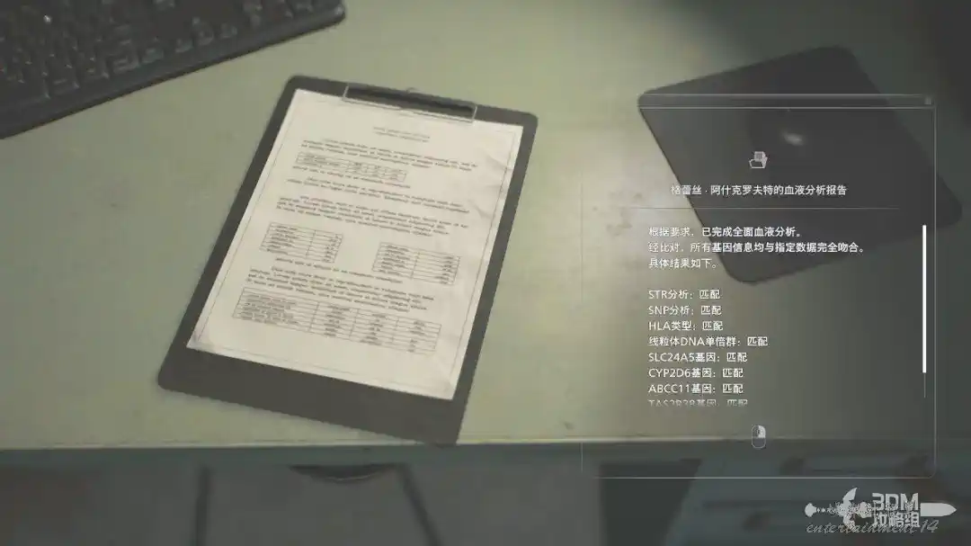 進門左邊桌子上有“格蕾絲·阿什克羅夫特的血液分析報告”。