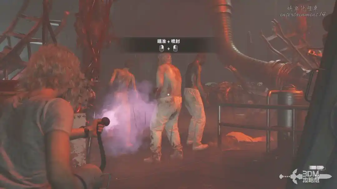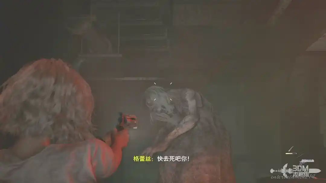 進教堂後我們讓格蕾絲先帶著艾米莉走,我們在這裡解決掉這個小BOSS。這個小BOSS身上的“肉瘤”就是要害,我們專打身上這個。