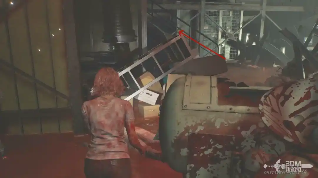上來後這裡有一個血池。左邊屍體旁邊可以獲得“起貨機鑰匙”。