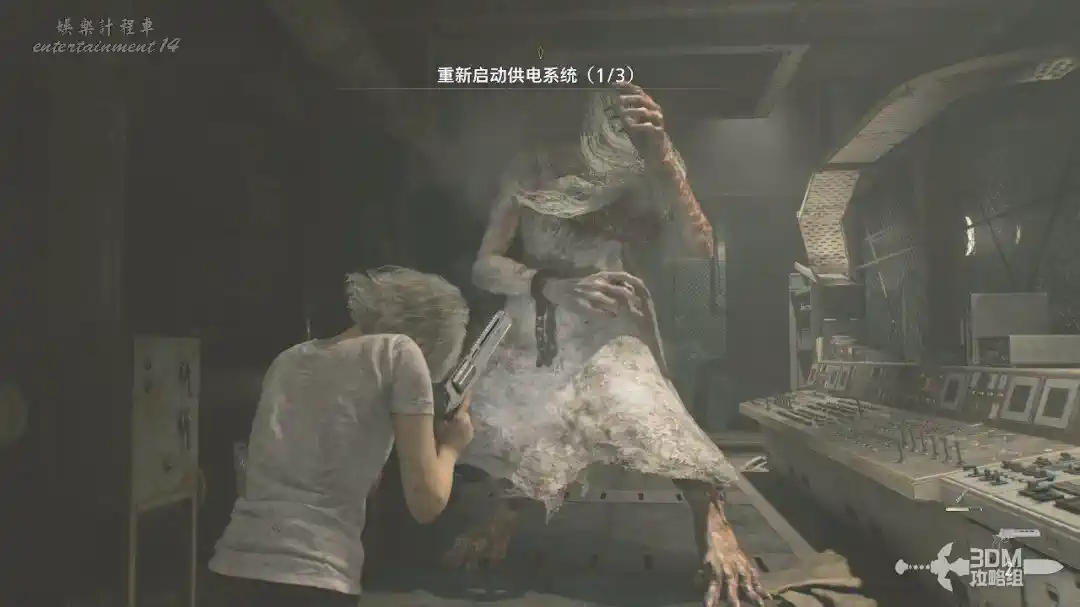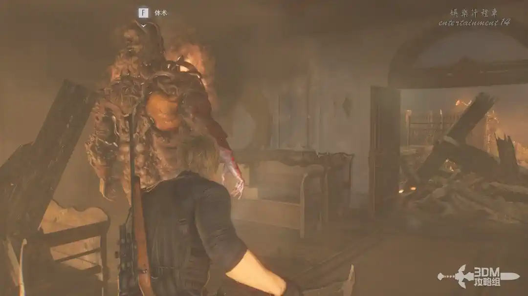 接下來去找艾米莉,可惜這個時候已經晚了,艾米莉已經死去。死去後的艾米莉還變成了怪物,我們要操控里昂將它擊殺(選擇不開槍也沒用,好像是強制擊殺的)。