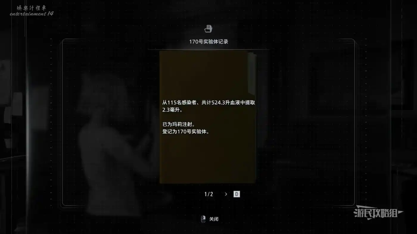 里昂乘電梯抵達中央精煉系統病倒後,劇情切換到格蕾絲,自動獲得【檔74/75】艾麗莎的採訪本、【檔75/75】派翠克的來信。