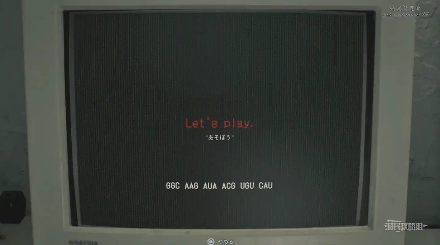 分析完成後,顯示器上會顯示【Let’s play】和【GGC AAG AUA ACG UGU CAU】的代碼。並且【研究主任室】的機關盒將可以重新操作。