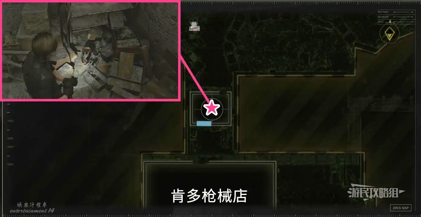消滅喪屍後往前走,到下圖位置拿到【電池】,然後開門回捲簾門使用電池。