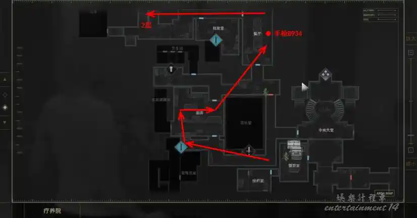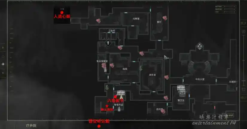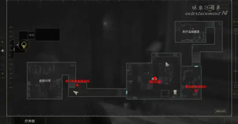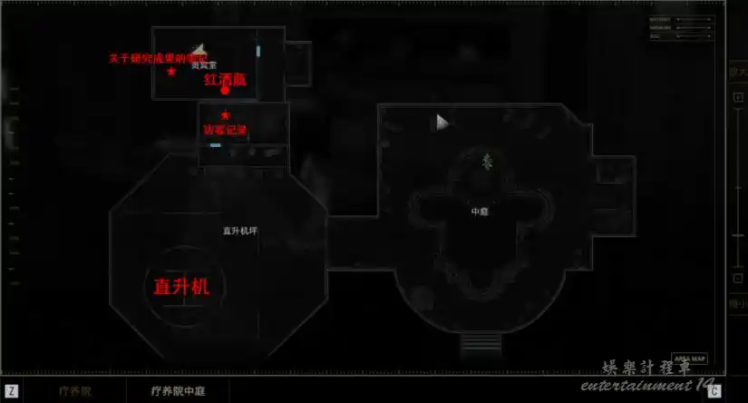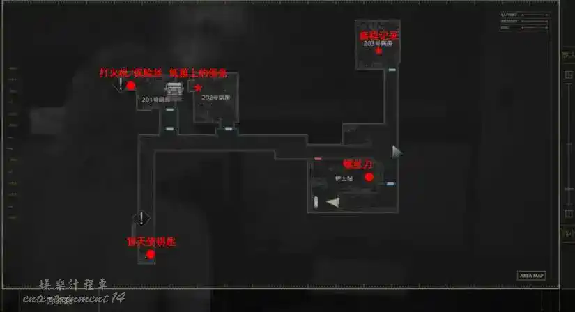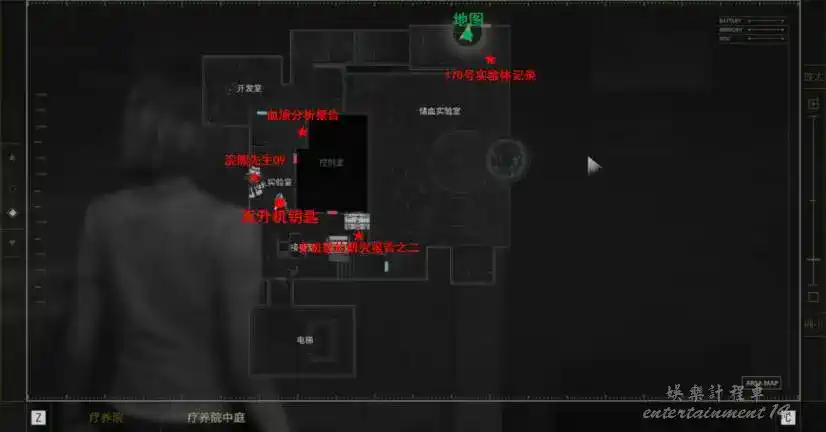 整個醫院的探索流程為西區→東區→1級鎖→2級鎖→3級鎖→地下