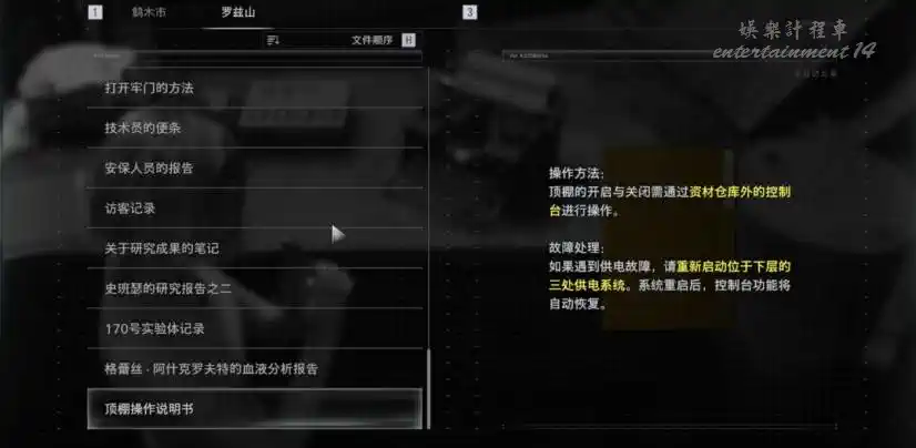 [文件室]獲得曲柄式操控杆 之後按流程啟動供電系統 再上樓打開頂棚