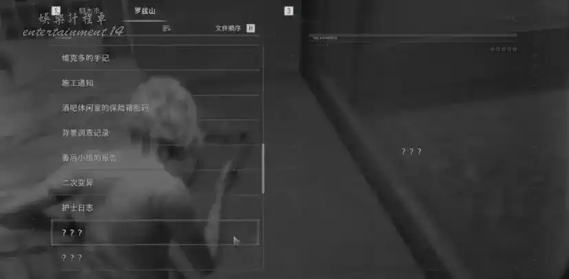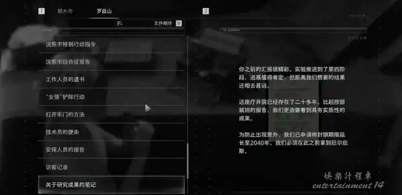 西北區域拿到接合插頭2 保險箱密碼(右60左40右80/左70右50左20) 打開後獲得浣熊追蹤圖-羅茲山 閱讀☆安保人員的報告