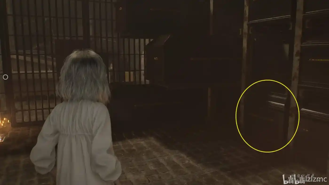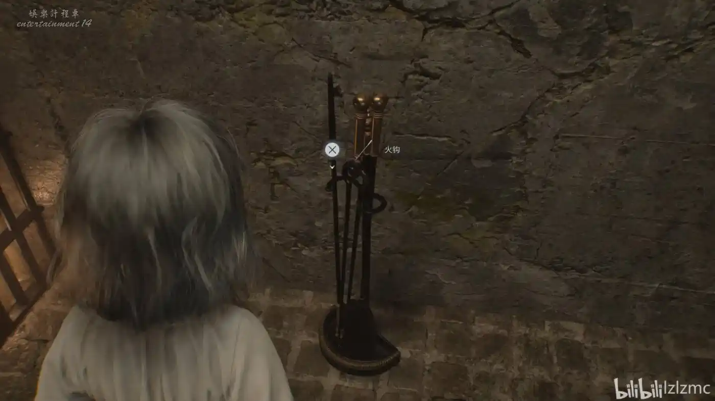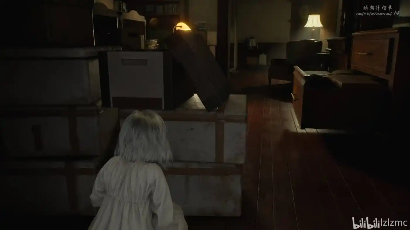 在如圖位置拾取關鍵物品:火鉤。開門出去觸發劇情,不要管所有女孩,直接跑過去用火鉤拉下梯子並爬上去,來到儲物間。
