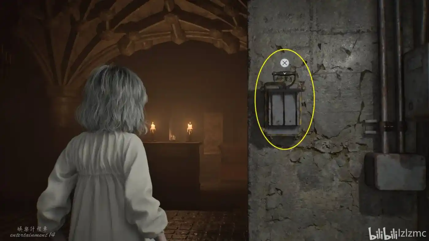 一直往前走,會被玩具車嚇一跳,然後來到地下教堂,靠近教堂兩個蠟燭的講桌後牆壁,會自動打開牆壁。