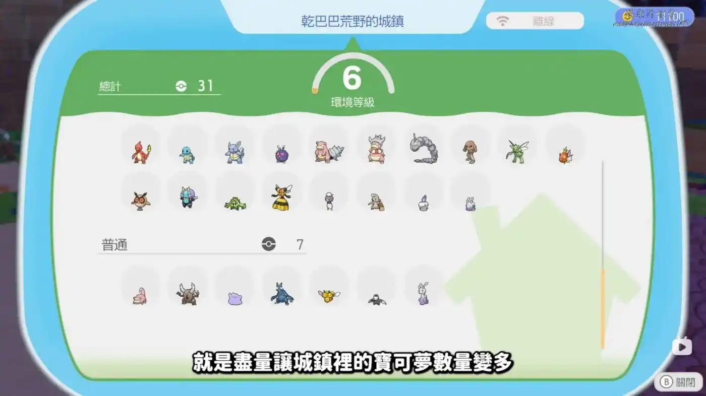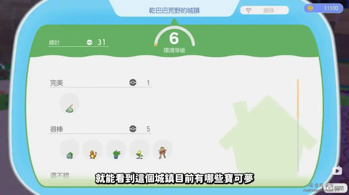 打開電腦裡的環境等級資訊就能看到這個城鎮目前有哪些寶可夢。