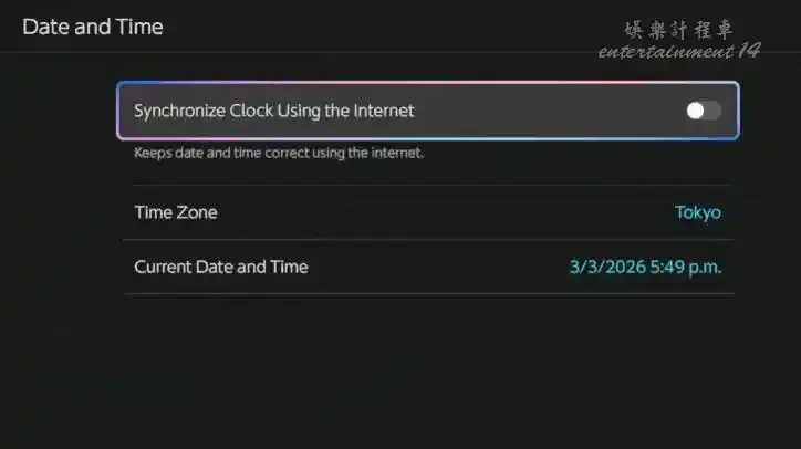 在系統功能表下進入日期和時間。確保你的“利用互聯網同步時鐘”設置為關閉。