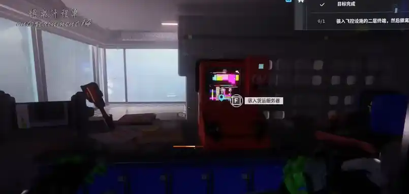 上到二樓,在玻璃幕牆房間內找到終端,駭入完成。