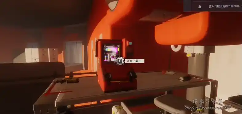 沿樓梯上到二樓,找到任務標記的終端,互動下載航運清單。