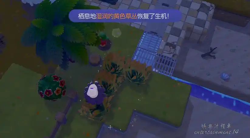 啟動標誌:草叢出現水汽/濕潤特效,靠近顯示“濕潤的黃色草叢”即成功
