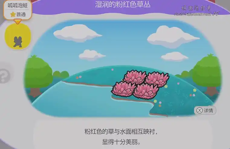 啟動標誌:出現濕潤水汽+粉色草浪特效,顯示「濕潤的粉紅色草叢」名稱。