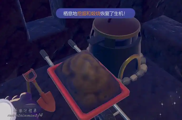 出現「挖掘煆燒/DiggingandBurning」名稱與挖掘+火焰特效