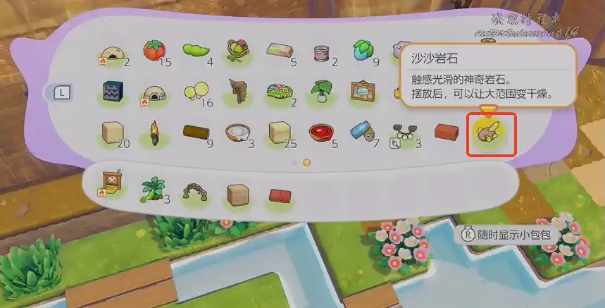 必備物品:乾草(DryTallGrass)×6、沙沙岩石×1