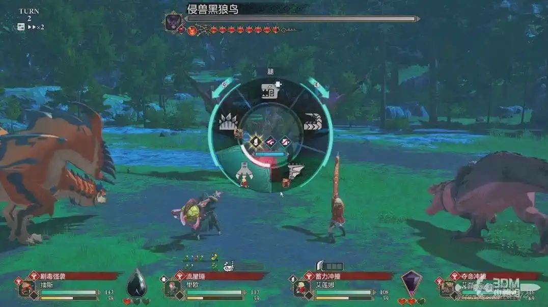 在戰鬥的時候我們還可以選擇其它的隨行獸參戰,但是一回合只能更換一次。我們可以手動命令它攻擊,也可以自動攻擊,自動攻擊會有更多地牽絆槽。