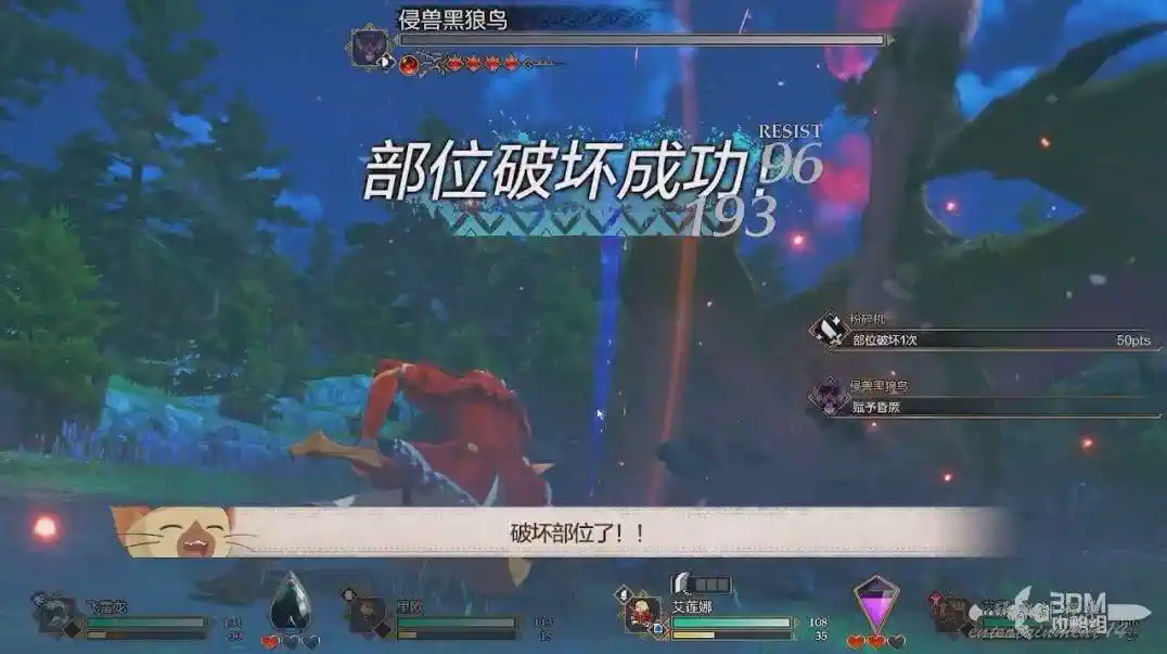 條件3:人物和隨行獸都需要打同一個部位,AOE技能不觸發。