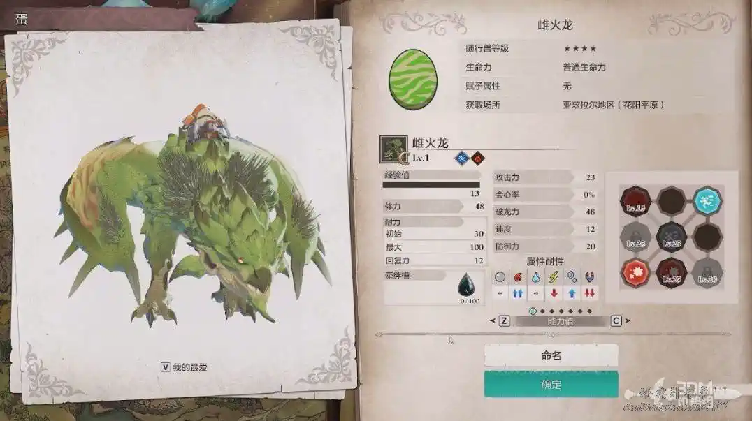 拿著蛋走出去就會讓我們將蛋孵化,孵化以後可以獲得瀕危怪物“雌火龍”。