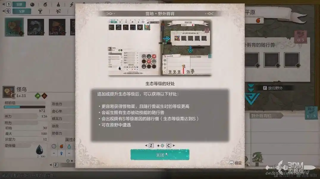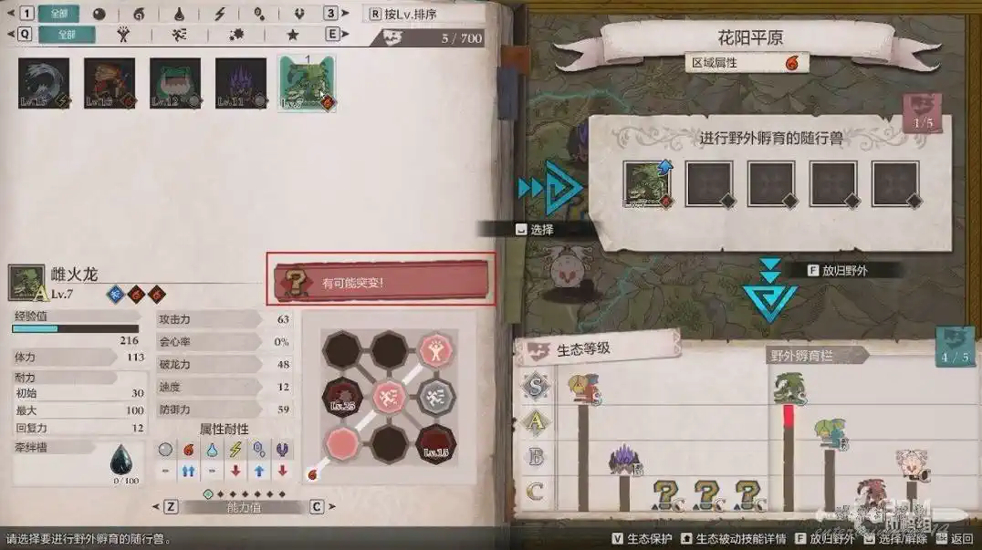 放生到一定數量後會提升生態等級,生態等級越高,我們能更容易摸到蛋。怪物的評級也會變高,最高為S。