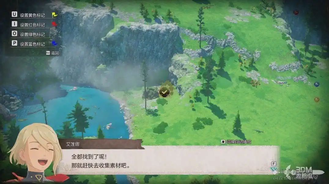 我們先去最近的湖邊,草裡的藍點直接互動就能獲取第一個素材。