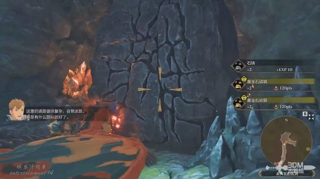 進來後有很多採集物可以採集,這種帶有裂縫的牆壁都可以破壞。